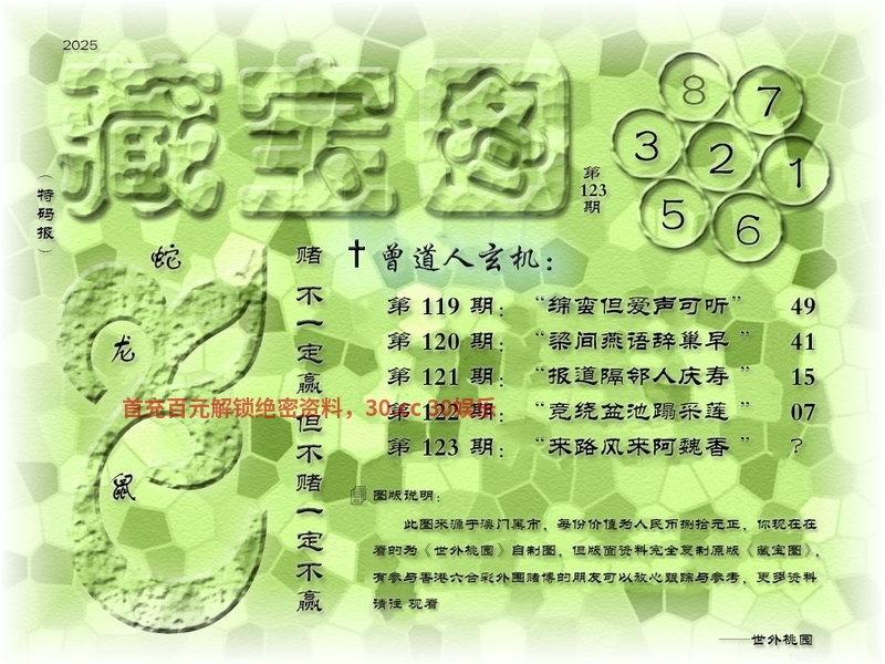 126期无字天书:六五两边双开数,四七得二开四二。蛇 20