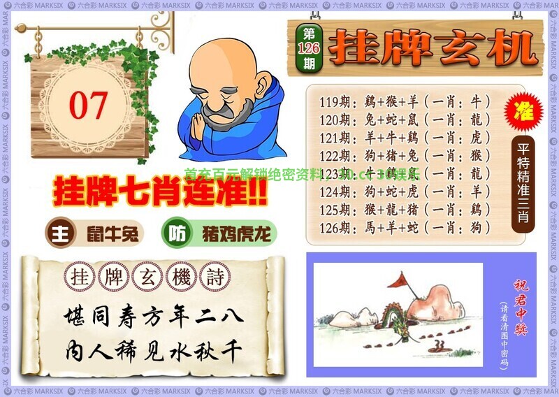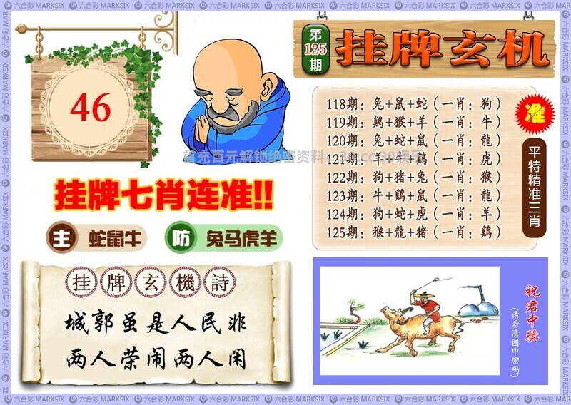 126期挂历诗:牛业蛇到鸡发财,神算金牌玄空数。